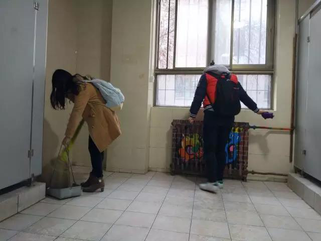 在进行了简单的任务分配后,学院负责人组织志愿者分别对田家炳教育书院的卫生间进行了彻底清理。负责人周密组织,积极参与,主动融入同学们中间,和同学们一起清理垃圾。卫生间内窗明地净,仅有的几个小广告也被彻底清理干净。同学们用自己的实际行动为学校增添一份清新,带来一抹明亮。