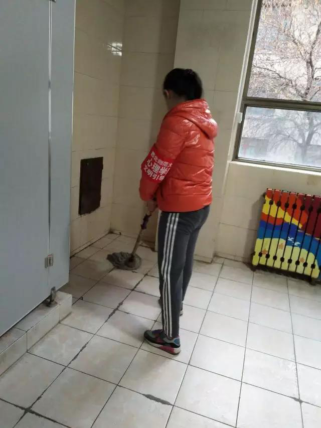看着窗明地净的卫生间,尽管同学们都很累,但都倍感欣慰,幸福感满满的。