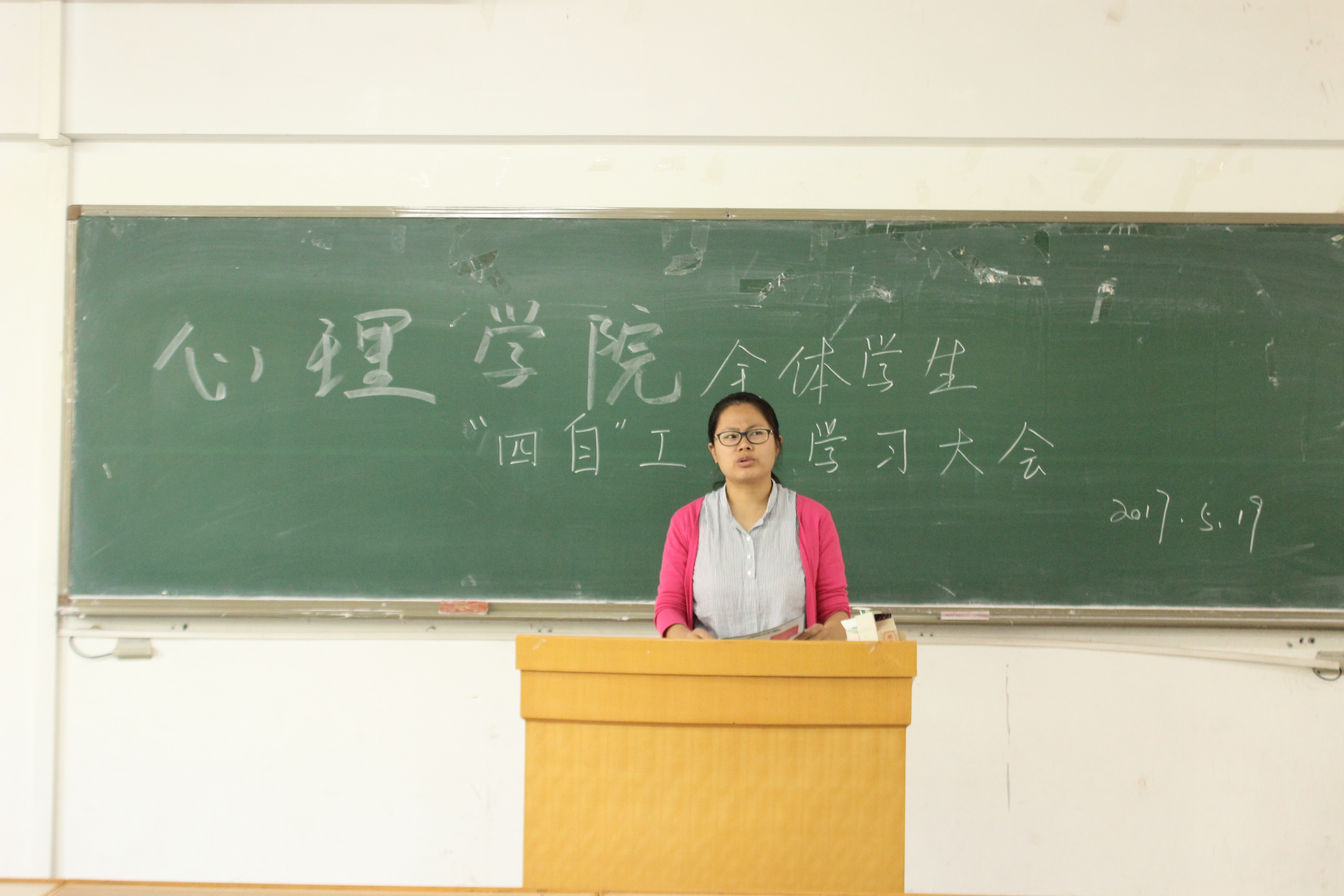 团委书记许琼英首先对学校《一图读懂学生“四自”工作》和学校学院相关的四自工作进行了解读,并提出了相关工作要求。许琼英强调,“四自”工作是学校立德树人的重大举措。全体同学要围绕“以学生为中心,以育人为根本”这条主线,实现“生活自理、学习自主、行为自律、人格自尊”。许琼英着重指出,对于学校提供“助学育人”岗位同学们要彻底摒弃“等靠要”思想,要有责任感和奉献意识,积极申请加入岗位,回归学生本位,学校现以资助与教育并重,助学与育人并举,即“育人为主,助困为辅”指导大学生发展。之后介绍了我院的学生管理模式将顺应学校制度,由管理学生到发展学生、教师(辅导员)管理到学生自主管理转变。