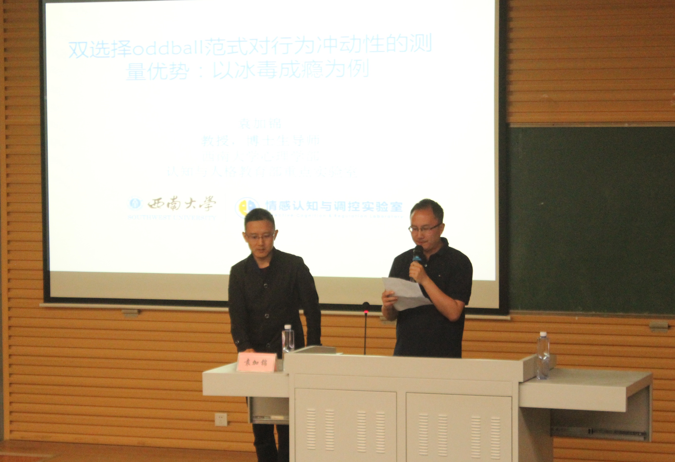 西南大学心理学部教授、博士生导师、认知与人格教育部重点实验室情感认知与调控方向首席研究员(PI)、美国芝加哥大学博士后袁加锦应邀莅临我校,并于新校区毅然报告厅二厅为我院师生带来“双选择oddball对行为冲动性的测量优势:以冰毒成瘾为例”讲座。本次讲座由365上市公司副院长赵鑫主持。365上市公司师生共400余人参加了本次讲座。