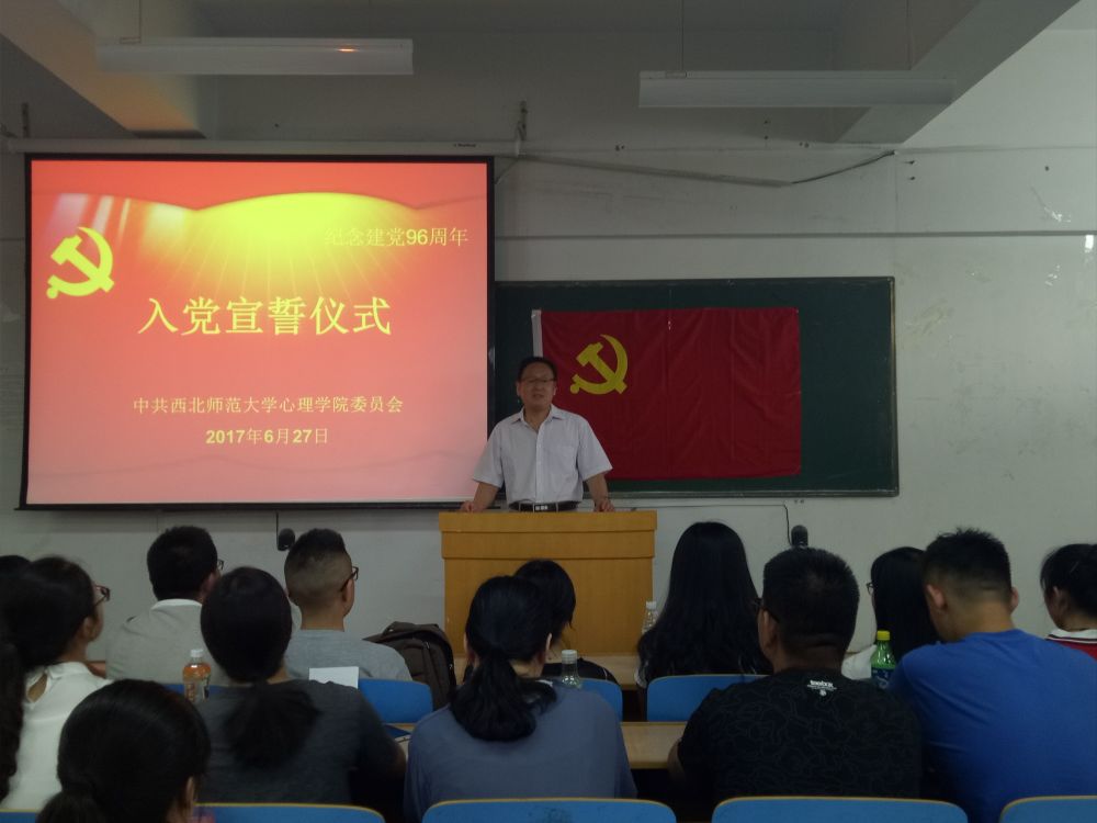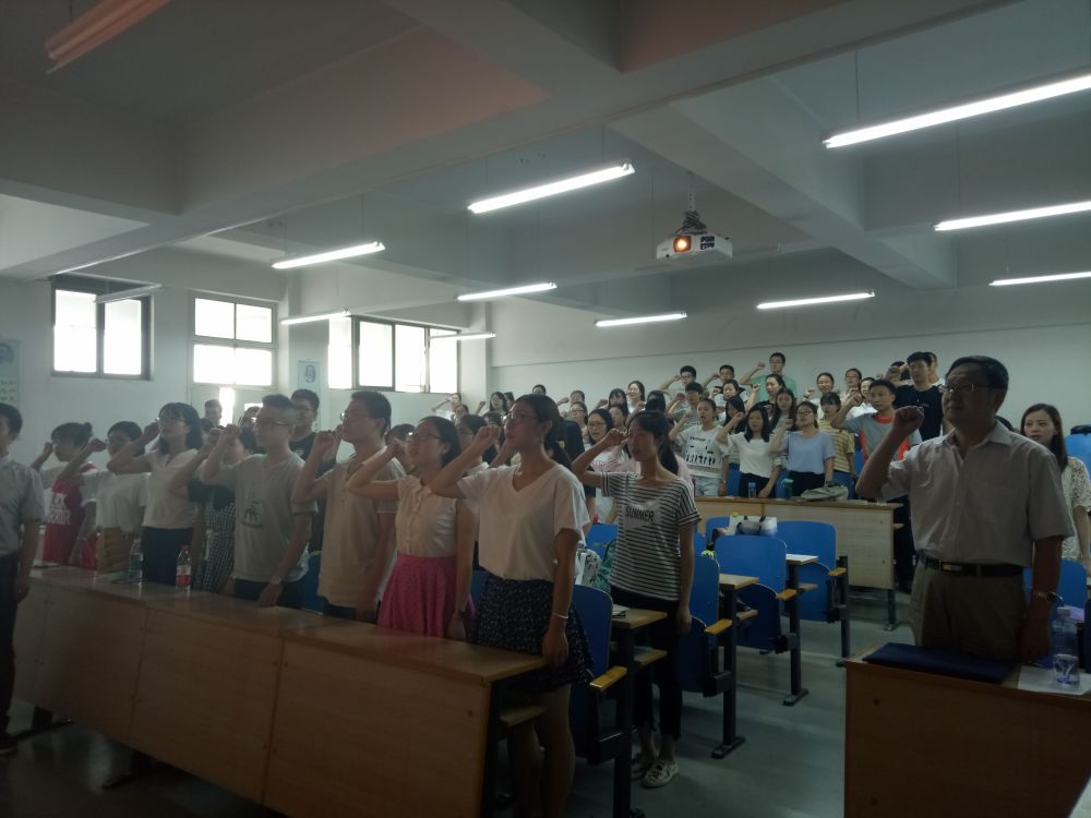 6月27日下午,365上市公司研究生、本科生党支部开展“庆祝建党96周年”主题党日活动,举办了新党员入党宣誓仪式、老党员重温入党誓词和省十三次党代会精神宣讲会。党委书记刘慧阳、党委组织员蒋玲和教师党员代表赵国军以及研究生、本科生党支部90余名党员出席活动。