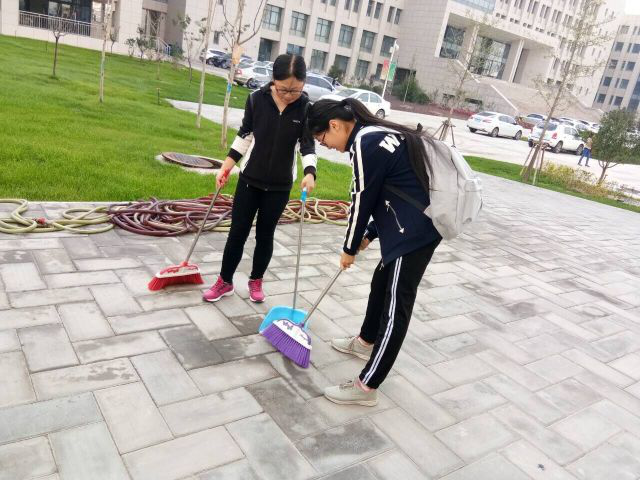 到了清扫地点,同学们在进行了简单的任务分配后,便立即投入了劳动。你扫地,我倒垃圾,分工明确,干的热火朝天。经过一个小时的辛苦劳动,同学们留下的不仅是勤劳的汗水,更是一片干净整洁的校园环境。