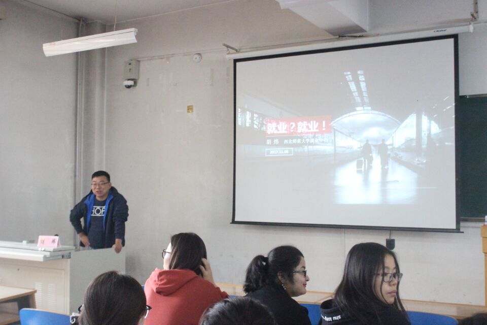 胡炜老师首先为大家讲述了公务员考试的相关情况及特岗教师、三支一扶、大学生村官的报名时间、条件、要求等基本事项。接着,胡老师对本院往届生的就业方向进行了分析,并为大家提供了指导。希望大家能够审时度势,对当前的就业形势进行深度剖析,从专业和自身实际情况出发,对自己的未来做出规划。