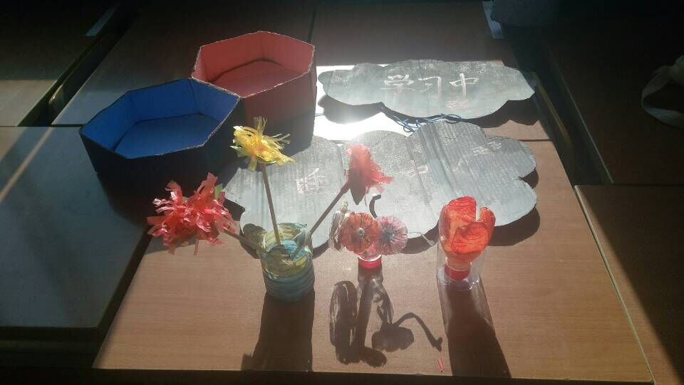 各宿舍把自己“变废为宝”的作品进行了展示,生活部对各宿舍的作品进行了评比。