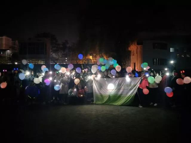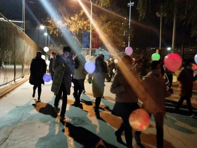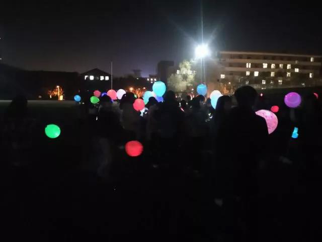 同学们首先在西操场集合,进行了简单的分组并发放了荧光棒和气球等物品,之后大家打开了手机keep软件,正式开始了荧光夜跑。