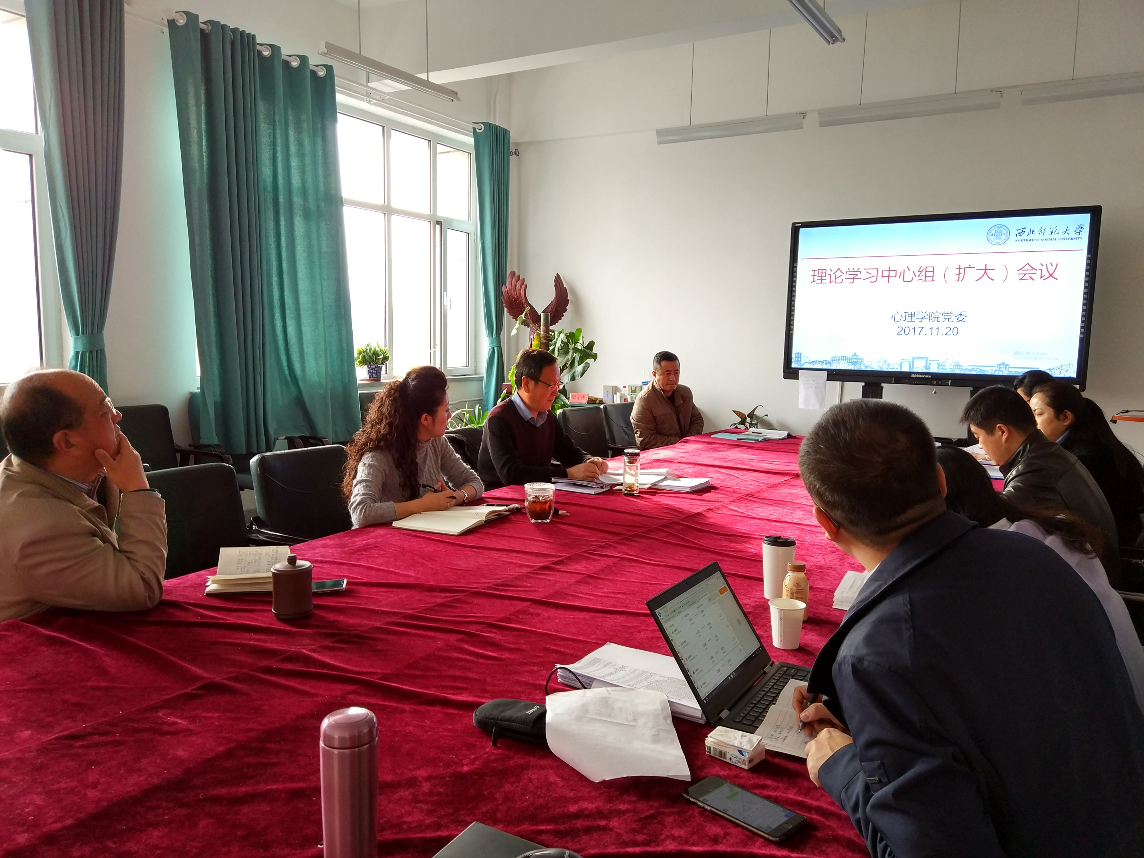 2017年11月20日下午,365上市公司党委召开理论学习中心组(扩大)会议,专题学习党的十九大精神,研究部署学院十九大学习宣传工作。学院领导班子、党委委员、党支部书记、系主任出席了会议。会议由党委书记刘慧阳同志主持。
