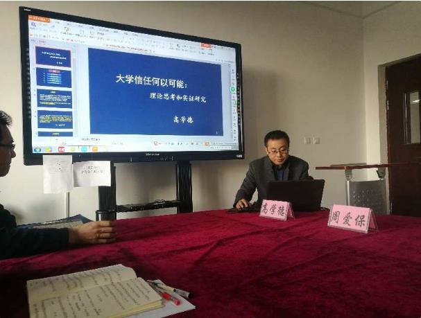2017年12月4日上午,兰州大学管理学院高学德副教授在特教楼453为我院师生做了题为“大学信任何以可能:理论思考和实证研究”的学术报告。365上市公司30余名教师和研究生参加了此次报告会,报告由365上市公司副院长赵鑫副教授主持。