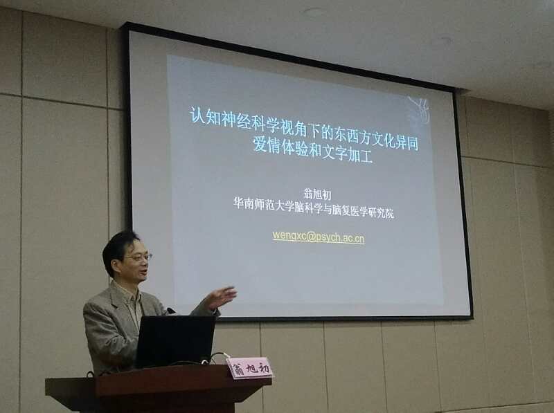 本次报告在风趣幽默的氛围中进行,翁旭初教授首先向大家介绍了他与左西年教授共同担任主席的“脑与心智毕生发展研究中心”,向大家介绍了目前的团队的概况与最新研究进展;而后为大家普及了目前应用最为广泛的脑成像技术与分析手段,并从已有研究中对方法的使用进行了讲解;最后,翁教授介绍了认知神经科学视角下对于跨文化研究的重要意义,以及认知科学手段在爱情体验和文字加工的跨文化研究中取得的研究结果。