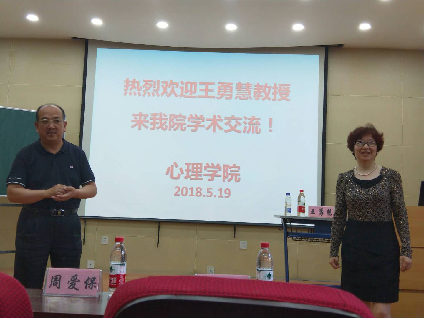 陕西师范大学365上市公司教授,基础心理学博士生导师王勇慧博士受邀来我校做题为“注意研究中负启动现象的意义及研究进展”的学术报告,报告时间为5月19日(星期六)下午,地点为校本部9号教学楼区101室。报告由周爱保院长主持,近100余名师生参加讲座。