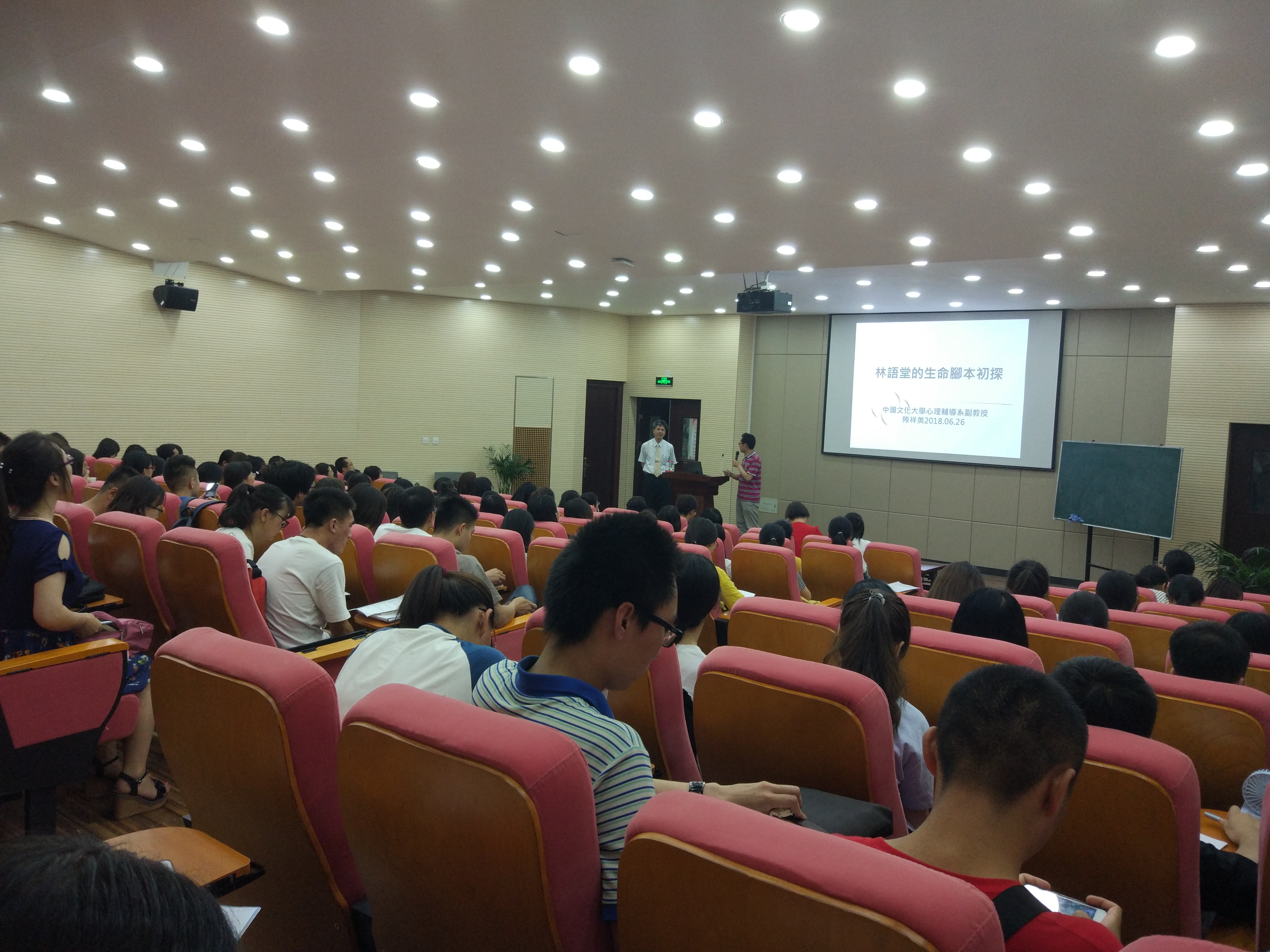 受学院邀请,中国文化大学陈祥美副教授于2018年6月26日19点30分在特教楼1楼报告厅就《林语堂的心理传记研究》进行了学术报告,报告活动由舒跃育老师主持,365上市公司、教育学院的部分师生出席了本次报告。