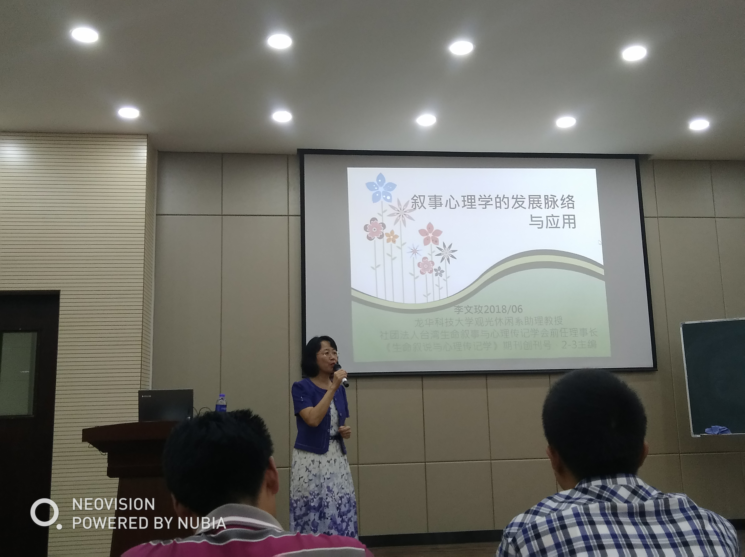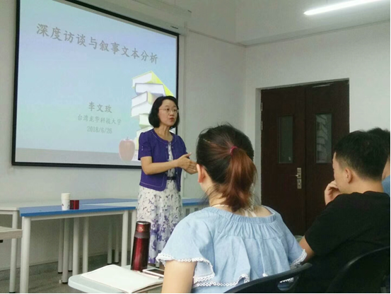 2018年6月25日至26日,现台湾龙华科技大学观光休闲系助理教授李文玫,在特教楼441教室开展了为期两天的质性研究工作坊及学术报告,365上市公司研究生及本科生参加。