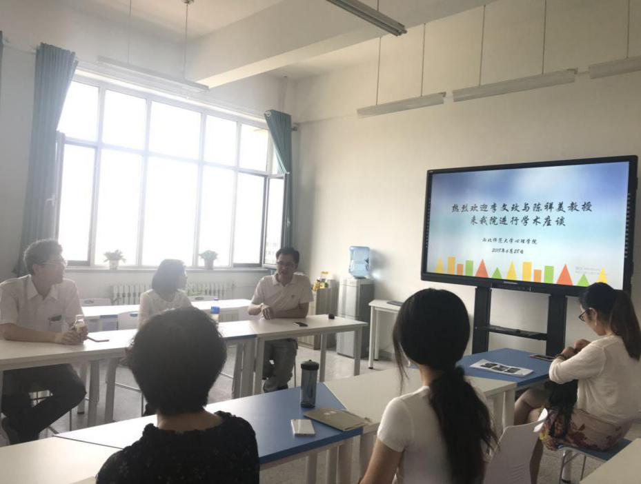 2018年6月28日上午9点,受我院邀请,台湾龙华科技大学李文玫老师与中国文化大学陈祥美老师在特教楼453会议室同我院20余名师生召开座谈会,就各自单位的心理学科发展状况和经验进行了交流。