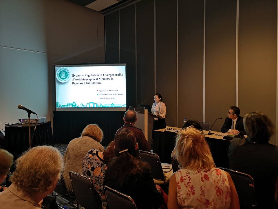 2018年8月25日,我院教师姜艳斐博士应邀参加第21届世界医学与临床催眠大会大会,并作题为“Hypnotic Regulation of Overgenerality of Autobiographical Memory in Depressed Individuals”口头报告。