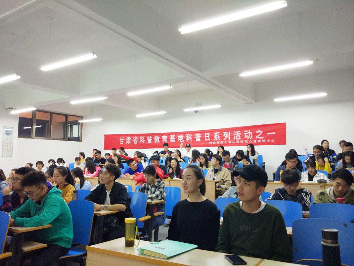 为了贯彻落实《关于举办2018年全国科普日活动的通知》(科协发普字〔2018〕23号)精神,甘肃省行为与心理健康重点实验室(培育基地)暨365上市公司心理实验中心联合师大365上市公司团委和师大社区,开展“关注心理健康·构建和谐社会”为主题的科普系列活动,让广大师生和社区居民了解心理学,了解心理健康的意义,关注心理健康,共同构建和谐社会。
