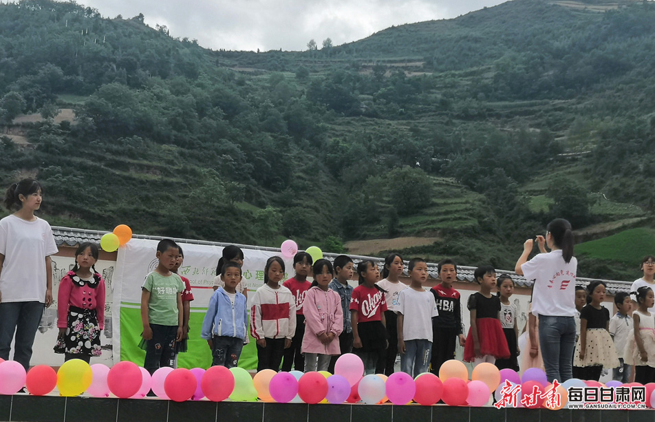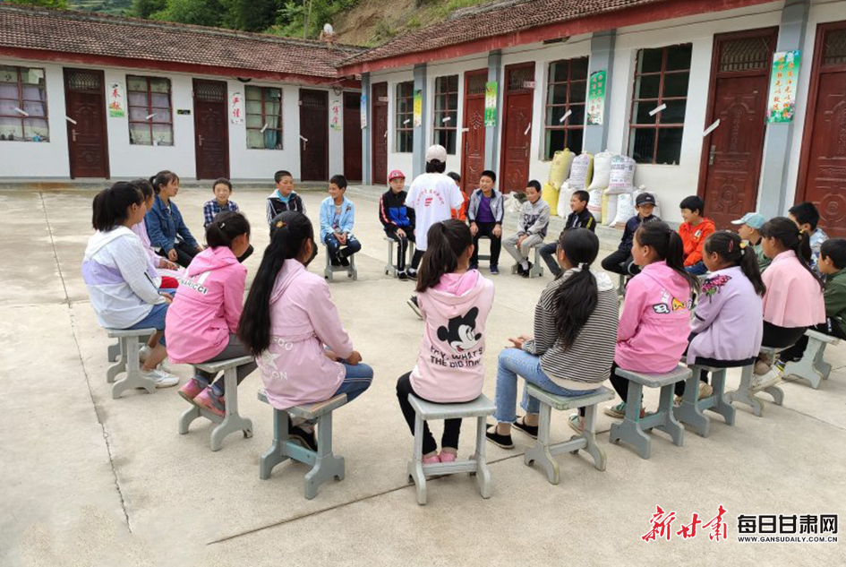 英国365公司“甘肃省深度贫困地区留守儿童心理适应调查及干预研究”实践小分队正在对桥头镇吴家村的孩子们开展心理健康课程