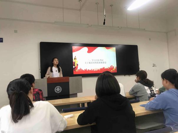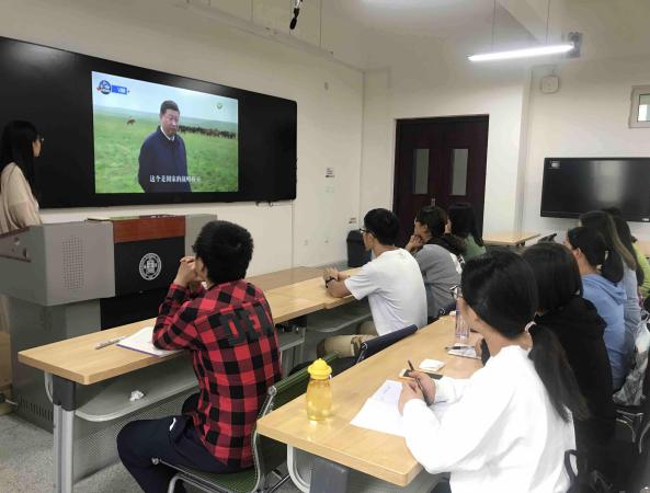 8月31日下午,本科生第二党支部全体党员集中观看了习近平总书记视察甘肃专题片,学习习近平总书记重要讲话精神,党员们重温红色甘肃历史,齐唱国际歌,大家纷纷表示要牢记初心,不负青春、不负使命,海轩宸、崔哲文同学作了重点发言。