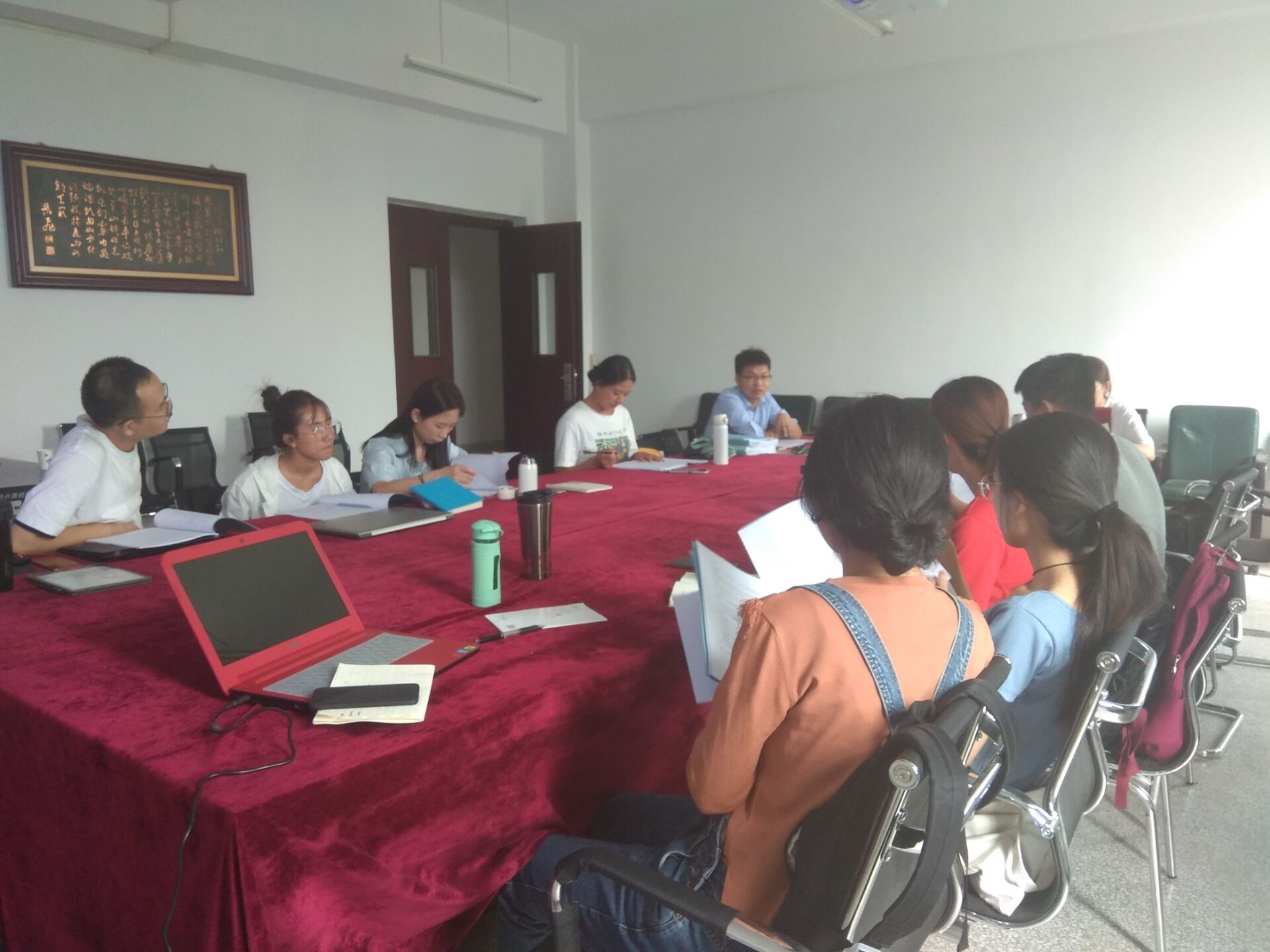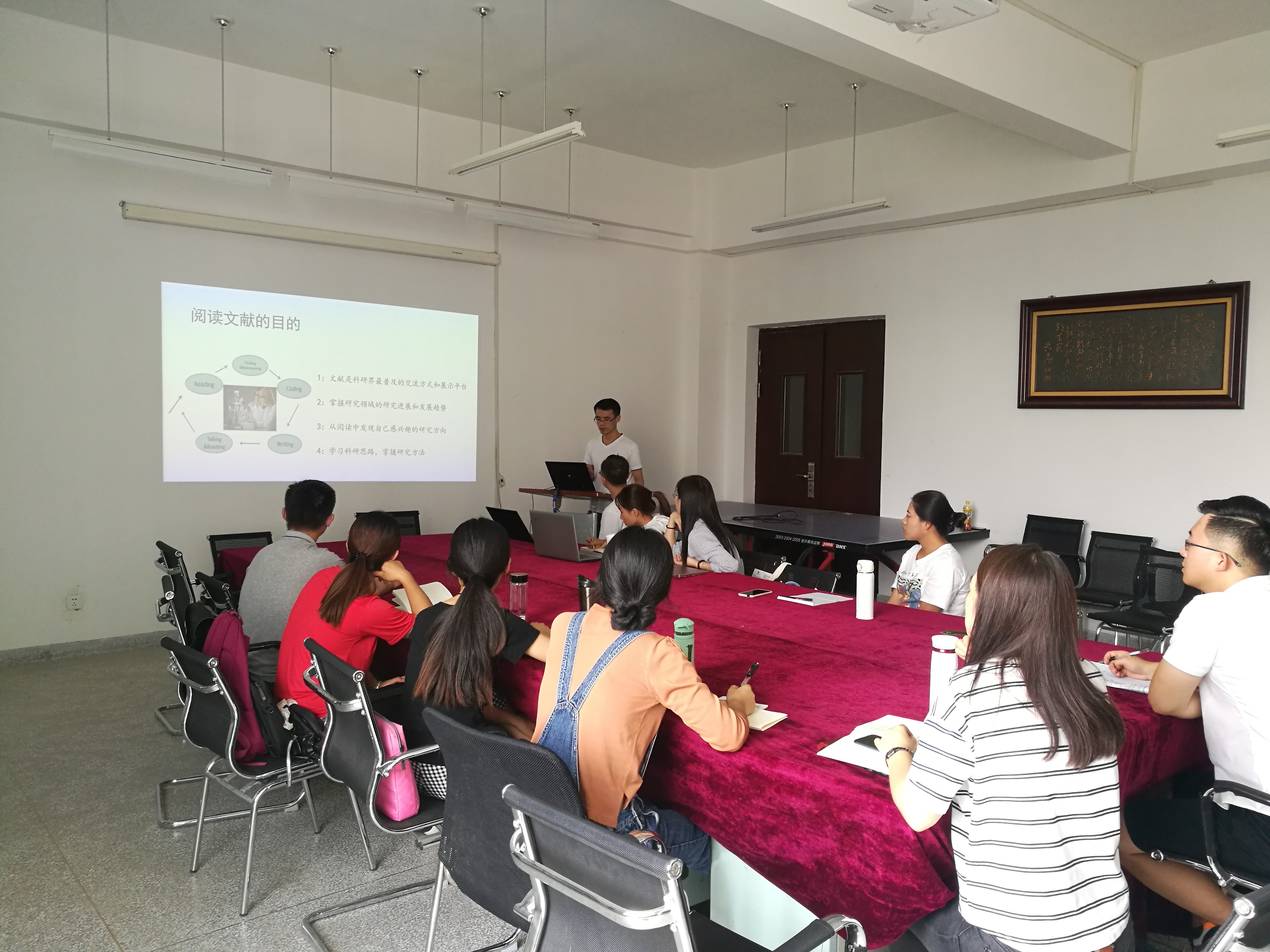 9月8日早上杨老师先介绍大家相互认识 ,特别介绍了课题组目前的情况及对大家的期望,也认真听取了新生对自己的介绍和他们对研究生生活的期许,并与大家进行了轻松愉快交谈。下午,几位参与培训的博士、硕士研究生分别围绕学院规章制度、研究生科研规划、文献查阅方法、文献阅读技巧、课题组规章制度、沙盘体验以及个人问题答疑等环节进行交流培训。