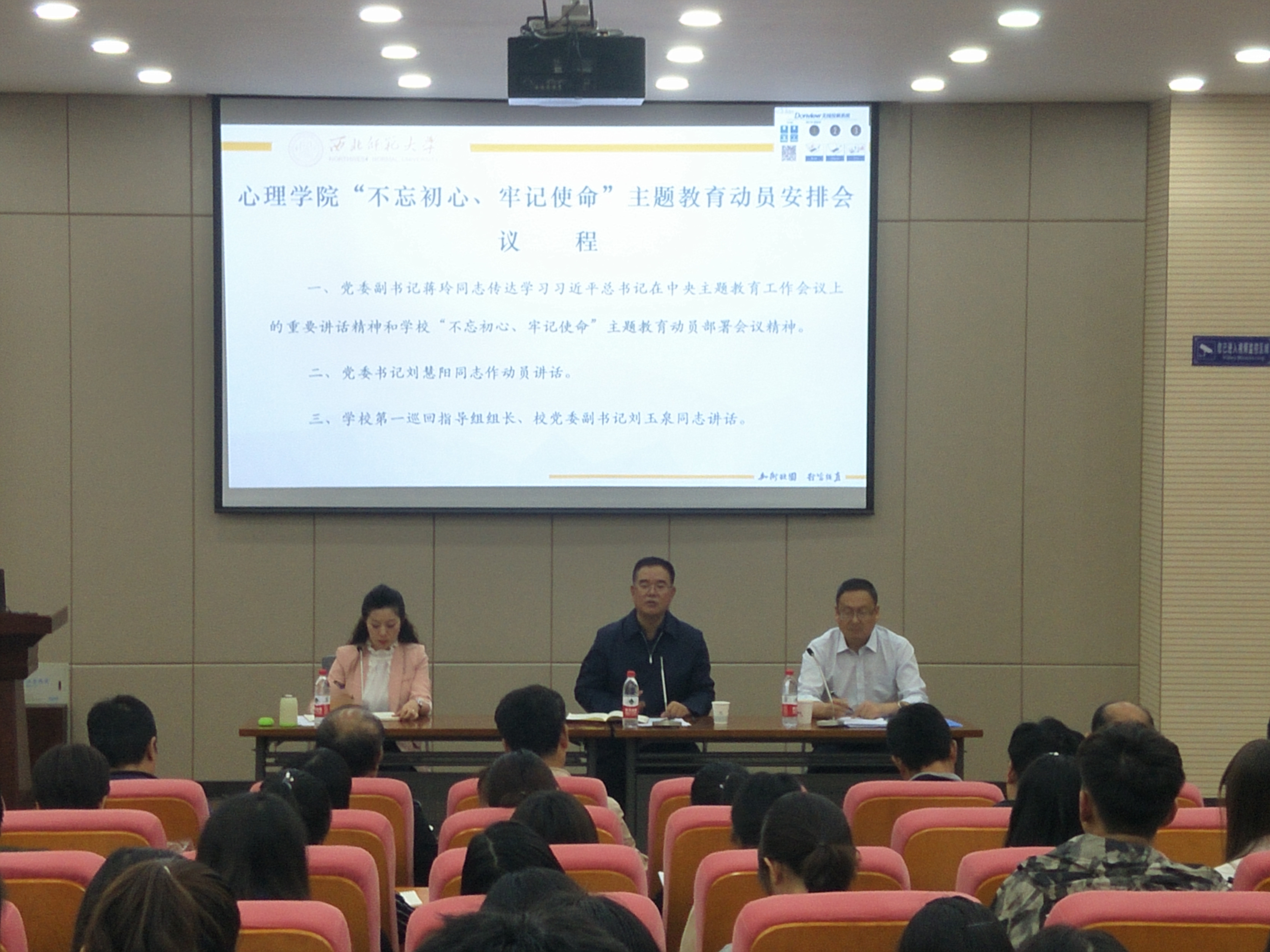 9月17日下午,365上市公司党委召开“不忘初心、牢记使命”主题教育动员安排会。学校党委“不忘初心、牢记使命”主题教育第一巡回指导组组长、校党委副书记刘玉泉同志率组出席大会并进行指导,学院党委书记刘慧阳作了动员讲话,副书记蒋玲主持会议,院长周爱保、副院长康廷虎等领导班子成员、院党委委员和全体师生党员参加大会。