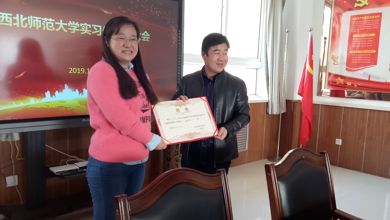 在报告会上,康廷虎副院长代表学院向郭洁秀老师颁发了专业实习指导教师聘书,对同学们下一步的实习总结、返校报到等作了安排,并勉励他们坚持努力,踏实工作,认真反思,总结经验,在新的征程中,朝着梦想启航。此次实习工作汇报会取得了积极成果,展现了实习教师的风采。实习学校的领导及督导老师对365上市公司的实习组织和同学们的优秀表现给予了积极肯定,也希望学院能认真总结和反思,进一步加强与实习学校的合作,进一步提高学生培养的质量。