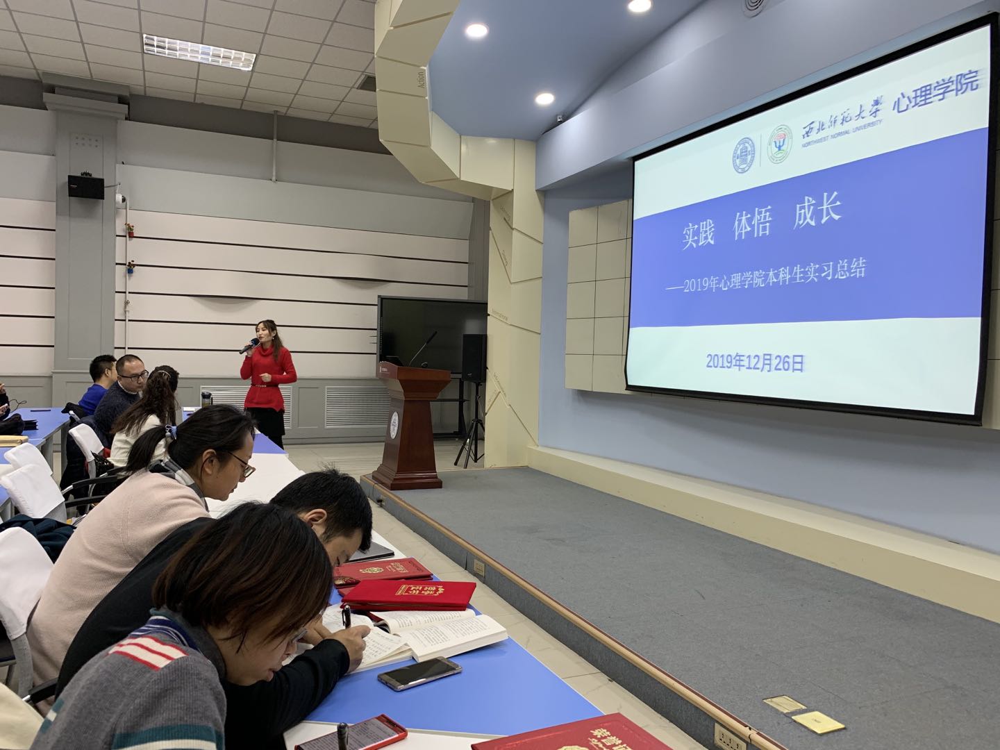 在汇报会上,康廷虎副院长汇报了365上市公司组织和指导本科生专业实习、实习基地建设等的基本情况;参加实习的各小组代表分别从心理健康教育教学实践、班主任管理、学校事务参与等方面汇报了同学们在实习过程中开展的各项工作,以及在实习过程中的收获和成长,感谢学院的精心组织,以及实习学校指导教师、领导的关怀和教导;来自兰州市第五十一中学的张翔老师代表实习学校指导教师总结汇报了同学们在实习学校的实习、生活情况,分享了对本科生专业实习指导的模式探索和指导经验。会上还为付出辛勤劳动的指导教师颁发了优秀指导教师的荣誉证书,为在实习过程中表现优秀的实习同学、获得本科生实习优秀案例展评的同学颁发了荣誉证书。
