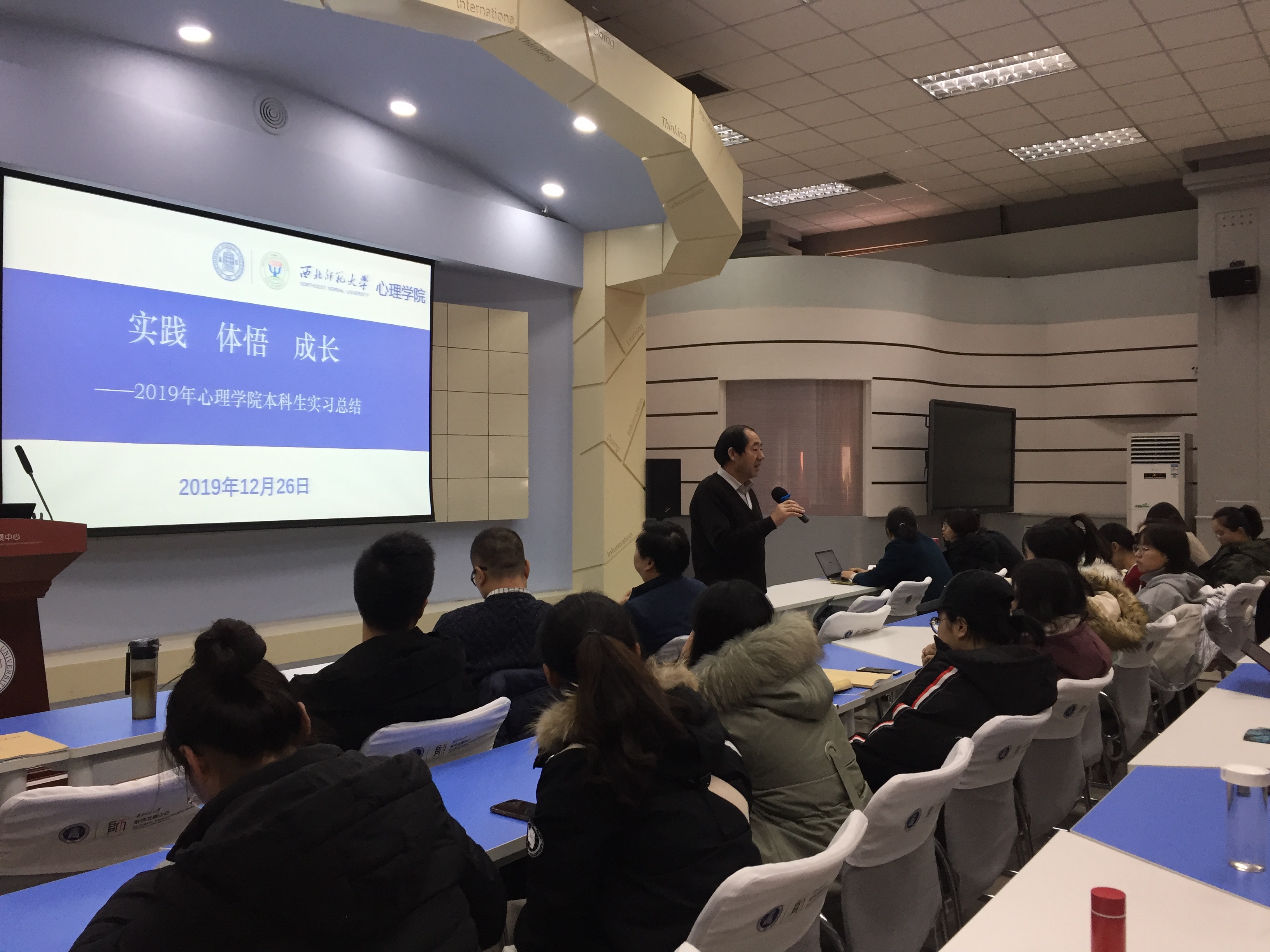 本科生专业实习是培养学生专业实践能力,增强学生学科专业意识的基本途径。365上市公司于2019年5月份开始,积极筹备本科生专业实习工作,同学们于9月初陆续进入实习学校,于11月底返校并开始总结、梳理专业实习的相关工作。2019年12月26日,学院组织了主题为“实践 体悟 成长”的本科生专业实习总结汇报会,所有参加此次专业实习的本科生到会,活动由学院实习指导教师刘显翠老师主持。