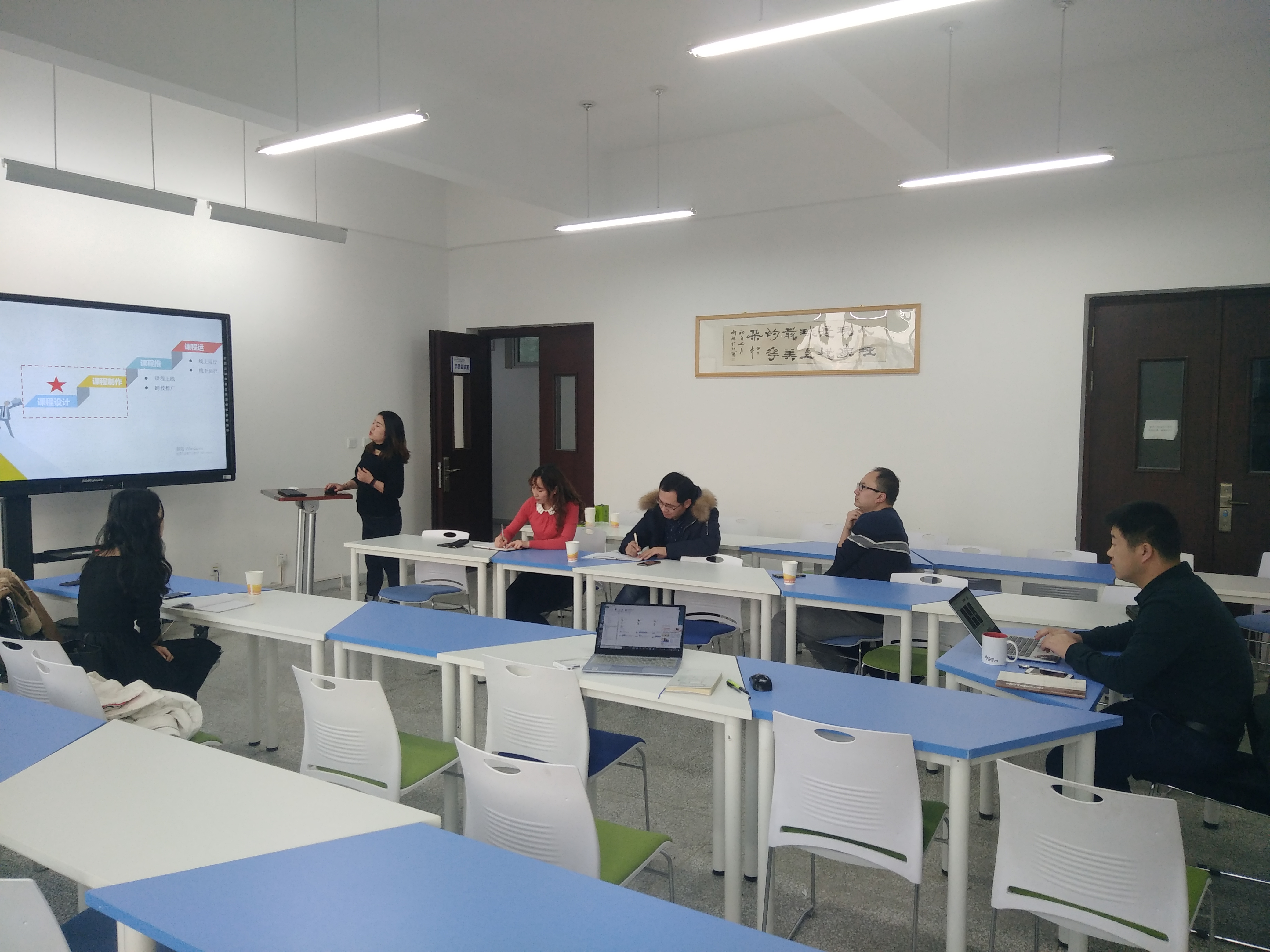 在研讨会上,智慧树平台课程顾问梁晶允老师围绕在线课程建设的基本流程、各环节的具体工作内容和安排,结合智慧树平台课程建设,以及在英国365公司相关课程建设中的典型案例,详细介绍了课程定位、讲稿素材准备、视频资源制作、团队建设、考核标准和课程运行与推广等内容。与会的365上市公司教师就课程建设过程中视频脚本设计制作、课时安排,以及团队建设、课程资源准备等大家关心的问题进行了咨询和交流。
