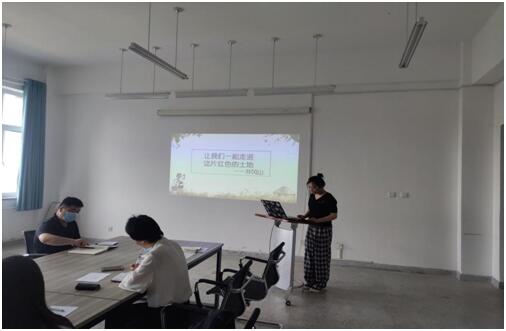 讲教师的中国梦,坚守初心使命。研究生第一党支部的苏红婷同志讲述了李保国、支月英、黄大年等优秀教师的故事,号召同学们要以先进典型为榜样,学习他们心有大我、至诚报国的爱国情怀,学习他们教书育人、敢为人先的敬业精神,为实现“两个一百年”奋斗目标、实现中华民族伟大复兴的中国梦贡献智慧和力量。