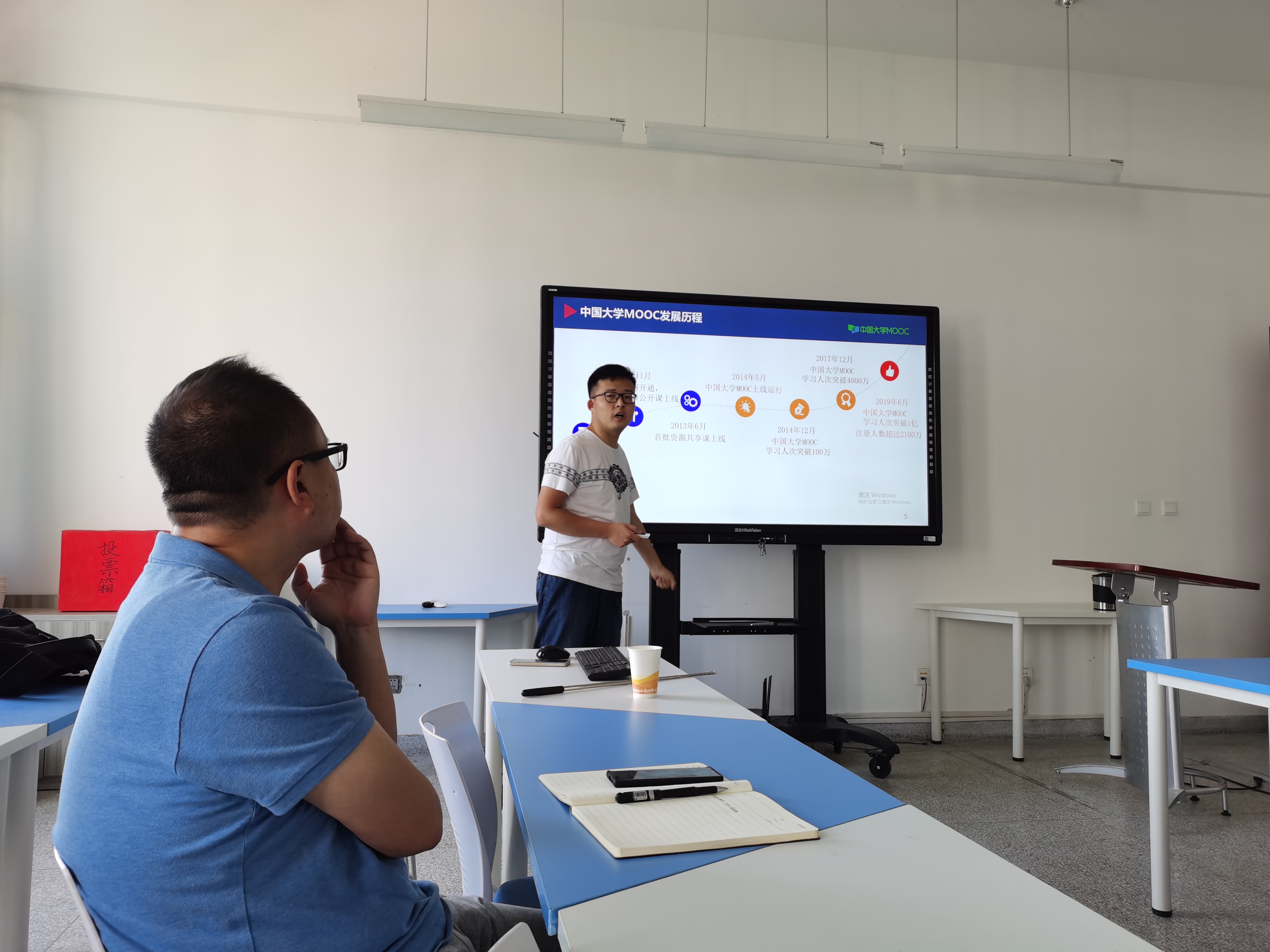 在报告会上,张文龙老师结合中国大学MOOC的发展历程、建设和运行模式,以及MOOC的基本组成部分等,为学院老师们介绍了线上线下混合式课程资源建设的基本路径、课程资源应用,并详细介绍了课程建设过程中授课段视频应用、论坛互动、答疑讨论、作业练习等的设计和建设。在会上,学院老师就自己关心的问题,比如经费应用、课程资源、平台使用等问题进行了交流,张老师也对各位老师提出的问题进行了细致的回答。