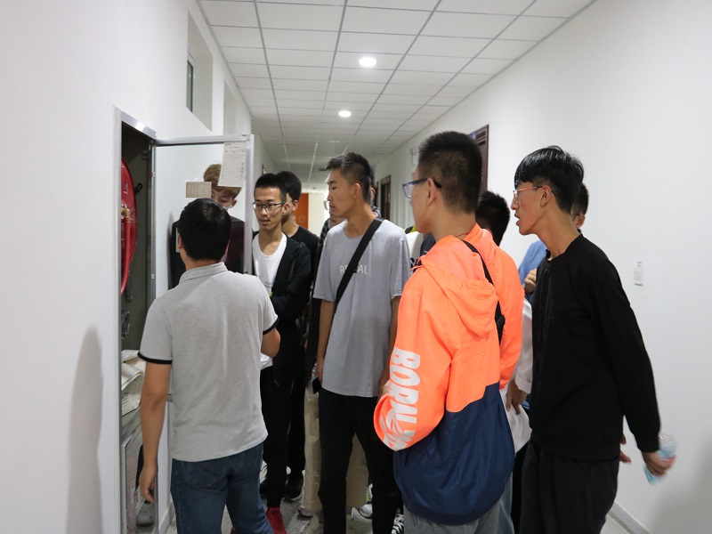 最后还给大一新生演示了365上市公司四楼的消防设备的正确使用方式。