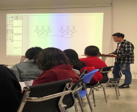 在分享会的第三阶段,胡砚冰同学向大家展示了该结构方程的具体操作流程,将理论与实践相结合,使同学能够更形象生动的对方程结构模型进行理解。在场的同学也与他进行了互动,学术氛围十分融洽。同学们积极思考,胡砚冰对同学们的问题进行了解疑答惑。