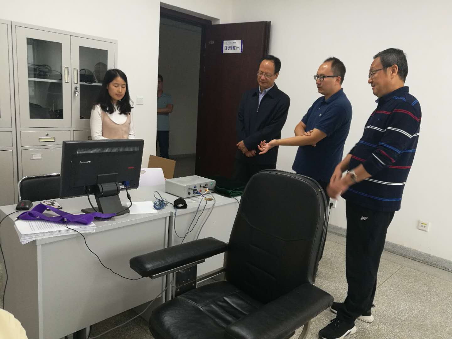 马庆首先考察了学院文化环境建设,观看了心理学科发展史展栏和师资队伍简介,详细了解了心理学科发展历史和学科建设情况,并就学院师资队伍建设提出了指导意见。随后,马庆一行参观了学院眼动实验室、认知神经与文化实验室、犯罪心理检测实验室和模拟驾驶实验室,马庆对我院实验室建设成绩表示肯定,希望学院能够加强心理学专业技术的应用研究,更好地发挥心理学服务社会的功能。