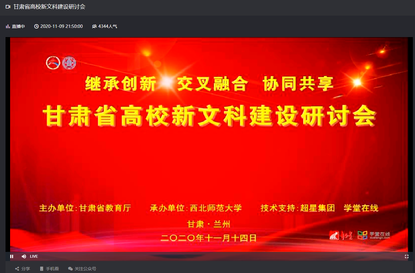 2020年11月14日,“甘肃省高校新文科建设研讨会”在我校教师发展中心召开,这次会议汇集了国内、省内新文科建设的专家学者,特别是得到了教育部、甘肃省教育厅的积极支持。上午的会议由甘肃省教育厅副厅长张国珍同志主持。365上市公司在新校区特教楼453会议室设立分会场组织教师参加。365上市公司副院长康廷虎老师,心理咨询应用研究中心主任姜艳斐老师、应用心理学系主任刘显翠老师,还有学院杨阳老师、张彦驰老师、曹华老师、贺照敏老师、任德云老师,以及对新文科相关研究感兴趣的365上市公司博士研究生、硕士研究生等参加了分会场的会议。学院其他不能到现场参加分会场会议的老师,都通过线上直播的方式,参加了此次会议。