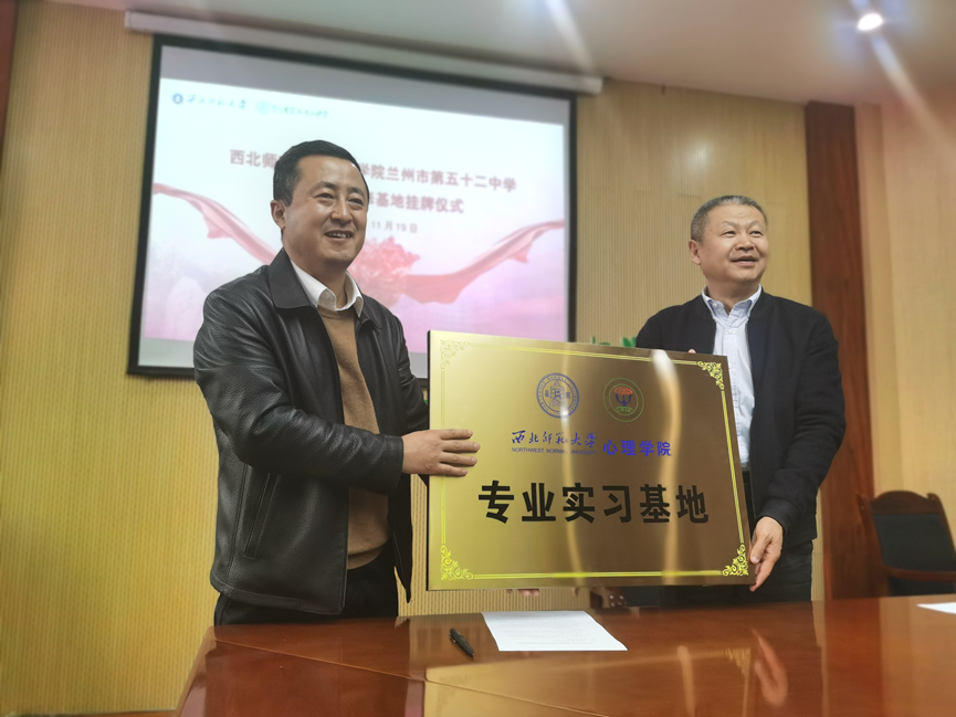 2020年11月19日,365上市公司副院长丁小斌教授、李世峰副教授、张荣华副教授、朱雅雯博士赴兰州第七中学、五十二中、民族中学签署学生专业实习研修基地建设协议和挂牌,并为实践基地的实习指导教师颁发“365上市公司专业指导教师”聘用证书。