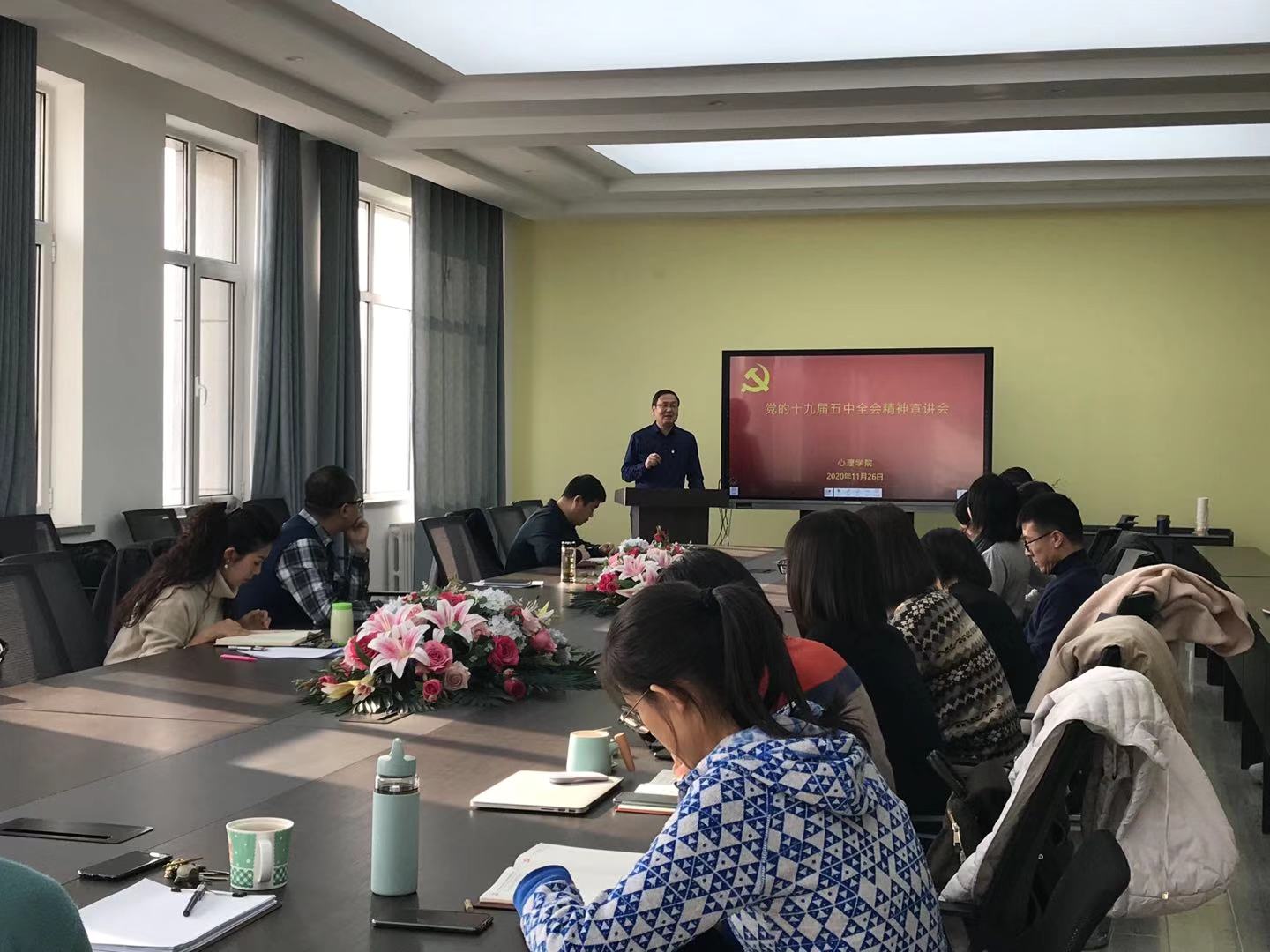 为深入学习宣传贯彻党的十九届五中全会精神,11月26日下午,365上市公司党委在新校区特教楼401室举行党的十九届五中全会精神宣讲会。院党委书记刘慧阳同志为学院全体教师和部分学生代表作了题为“开启全面建设社会主义现代化国家新征程”的专题辅导报告。