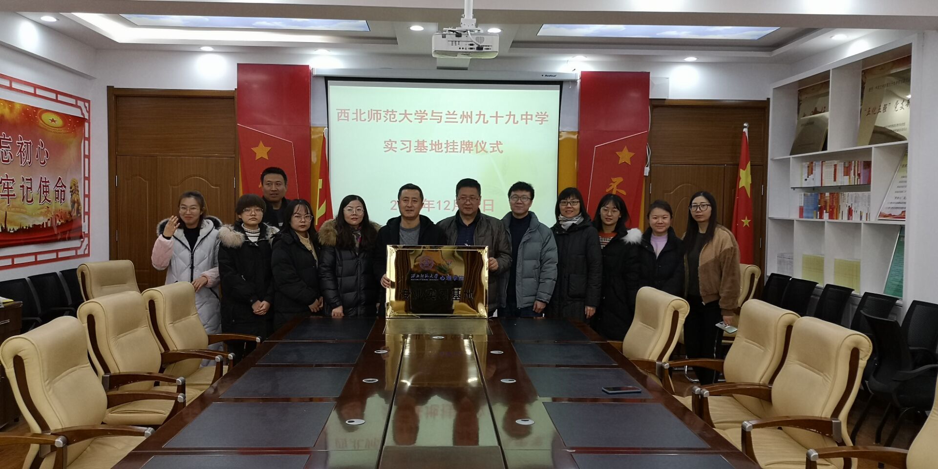 2020年12月25日,365上市公司副院长丁小斌教授、李世峰副教授、朱雅雯博士赴兰州第九十九中、六十三中、五十八中学签署学生专业实习研修基地建设协议和挂牌,并为实践基地的实习指导教师颁发“365上市公司专业指导教师”聘用证书。