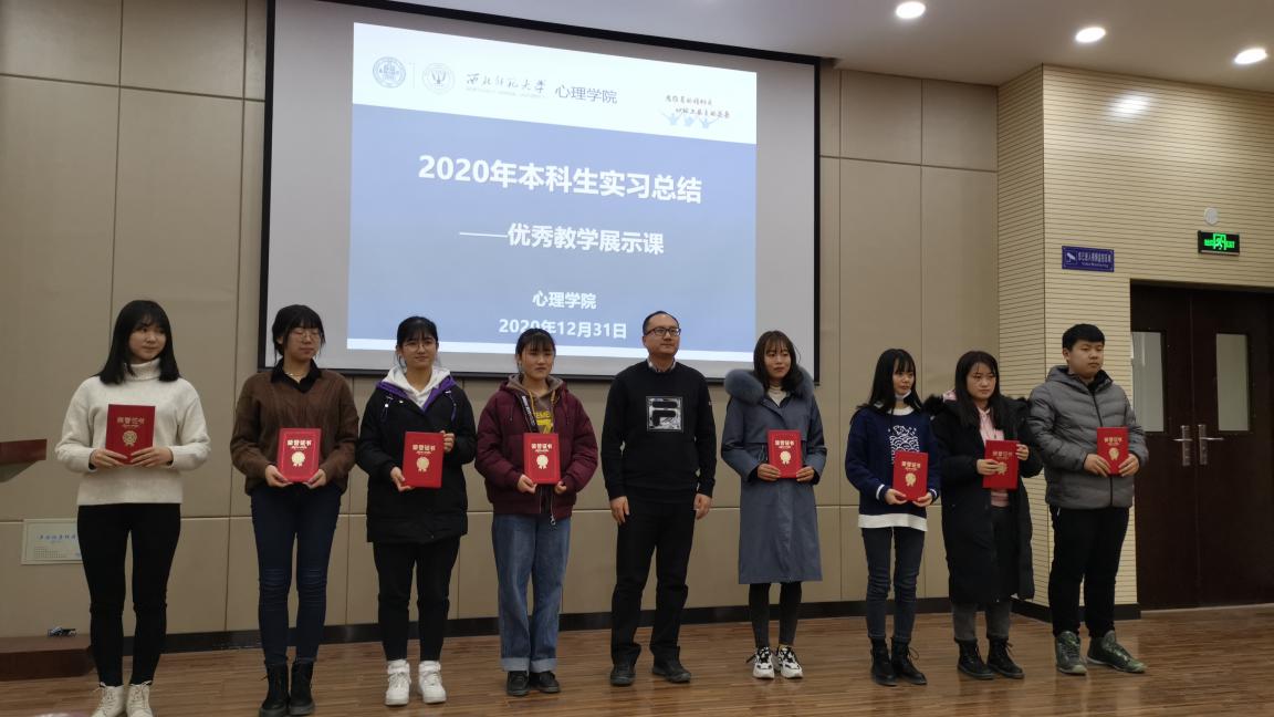 在教学展示中,康廷虎副院长参与了同学们的教学活动,分享了参加课堂教学活动“优点大轰炸”过程中的心理体验,也对同学们精彩的教学给予了热情的支持和鼓励。刘显翠主任对每一位同学的教学展示都做了精彩的点评,最后,学院赵鑫院长为优秀展示课同学颁发了365上市公司教育实习“心理健康教育课优秀教学案例”的荣誉证书,勉励同学们继续努力,并祝愿大家在新的一年里获得更大进步。