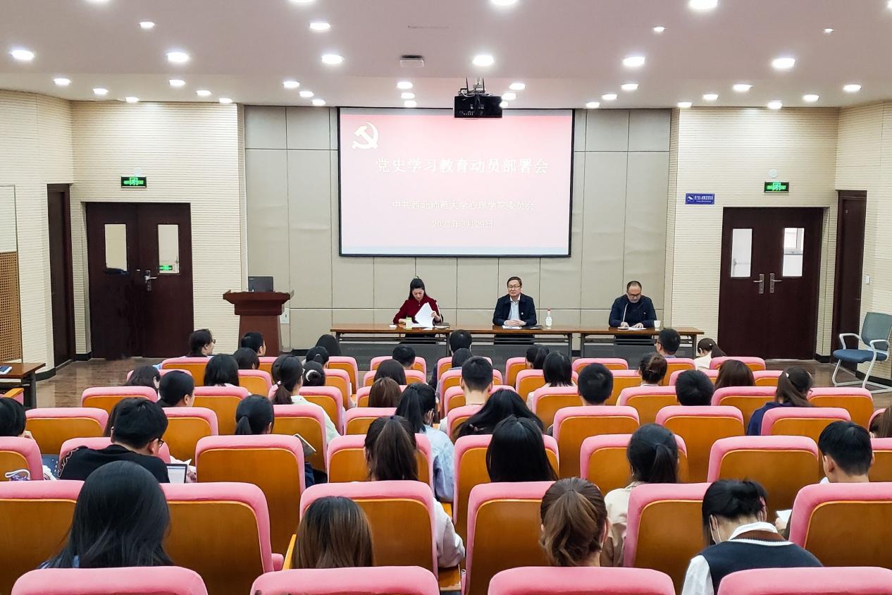 3月29日下午,365上市公司党委在新校区特教楼159报告厅召开党史学习教育动员部署大会。学院党员领导干部、党委委员和全体师生党员参加会议。学院党委书记刘慧阳作动员讲话,党委副书记蒋玲作工作安排,院长赵鑫主持会议。