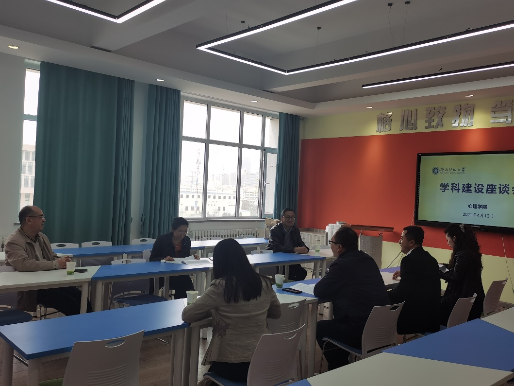 2021年4月12日,我院召开学科建设论证会,北京大学心理与认知科学学院教授苏彦捷老师、学院领导班子成员以及部分教授和青年教师参加了座谈,座谈会学院院长赵鑫教授主持。