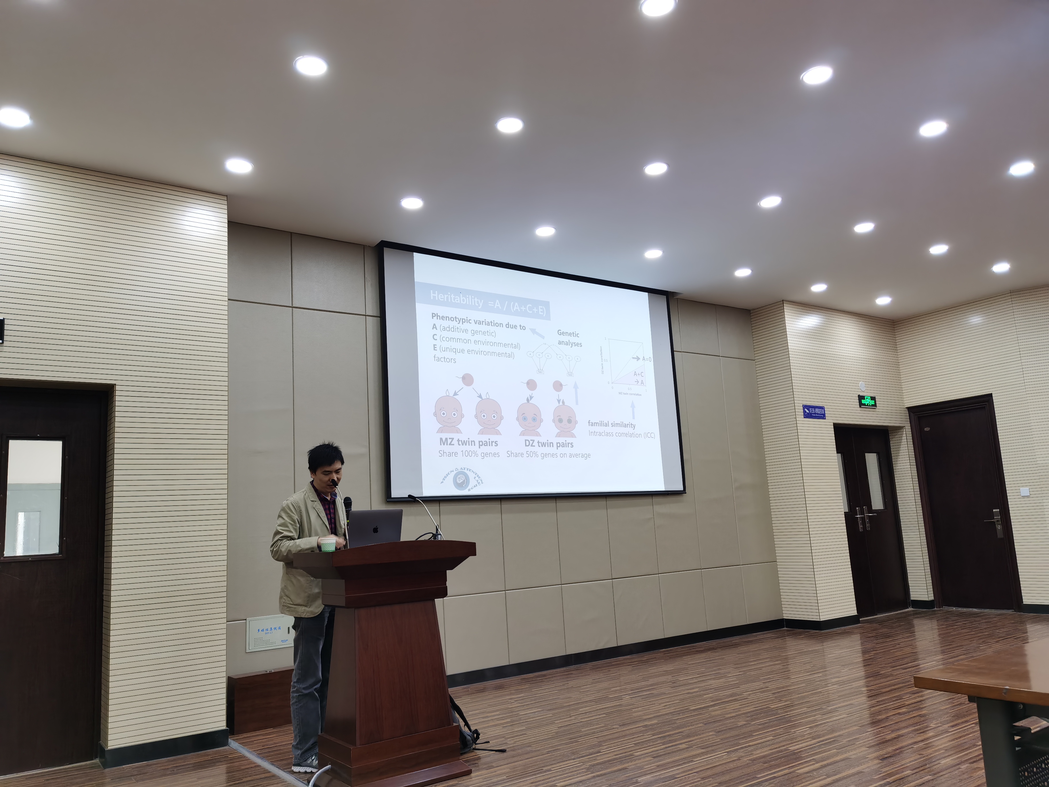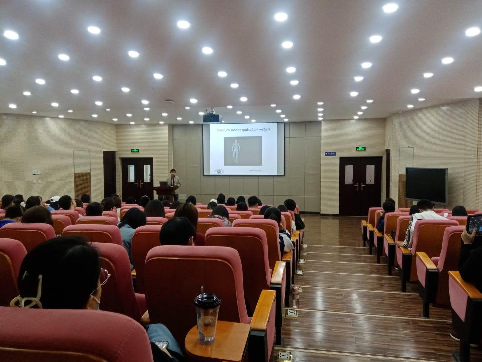 讲座伊始,蒋老师用动态的光点小人引出了今天讲座的主题,激发了大家对于视觉加工研究的浓厚的兴趣。而后,蒋老师生动有趣的讲解了双生子实验,小鸡和鱼的实验等社会注意和社会认知的实验研究。最后,蒋老师重点对其团队的自闭特质儿童早期识别和干预的研究进行了详细介绍。