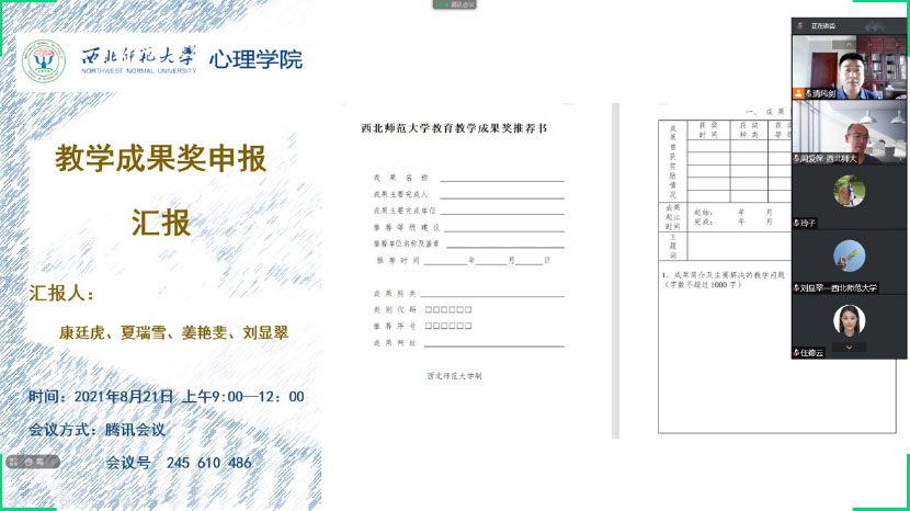 2021年8月21日,365上市公司组织2021年教育教学成果奖申报及推荐的论证会。邀请省级教学成果奖获得者周爱保教授、学院教学督导杨玲教授对汇报进行点评。会议由康廷虎副院长主持,通过线上会议方式组织。学院王仁书记、丁小斌副院长、舒跃育教授等22人参加了活动。