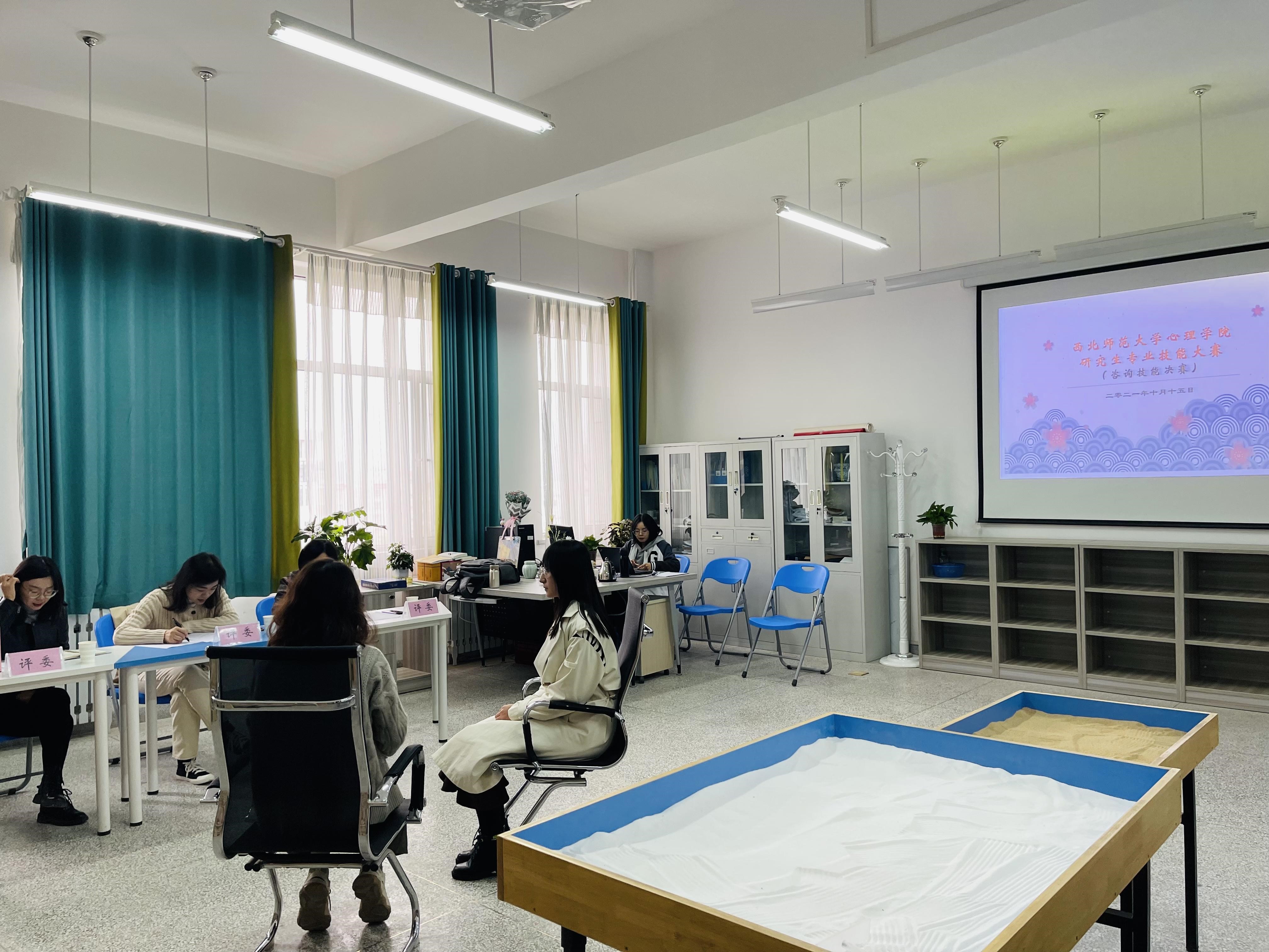 心理咨询技能比赛分为面谈技巧、正念和沙盘三个主题。面谈技巧通过初次访谈、正式比赛两个环节展示选手的面谈技巧和个案概念化的能力。决赛过程中,参赛同学现场展现出了较高的专业素养和随机应变的能力,发挥出了自己的潜能。