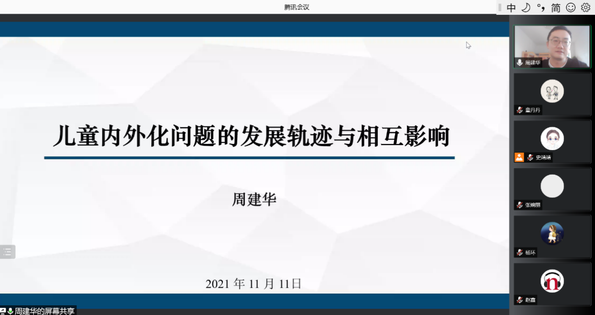 2021年11月11日,365上市公司举办了第三场“木铎心声”365上市公司青年教师系列学术讲座,周建华博士为我院师生作题为《儿童内外化问题的发展轨迹与相互影响》的学术报告。报告由365上市公司马小凤教授主持,365上市公司100余名师生参加了本次报告。