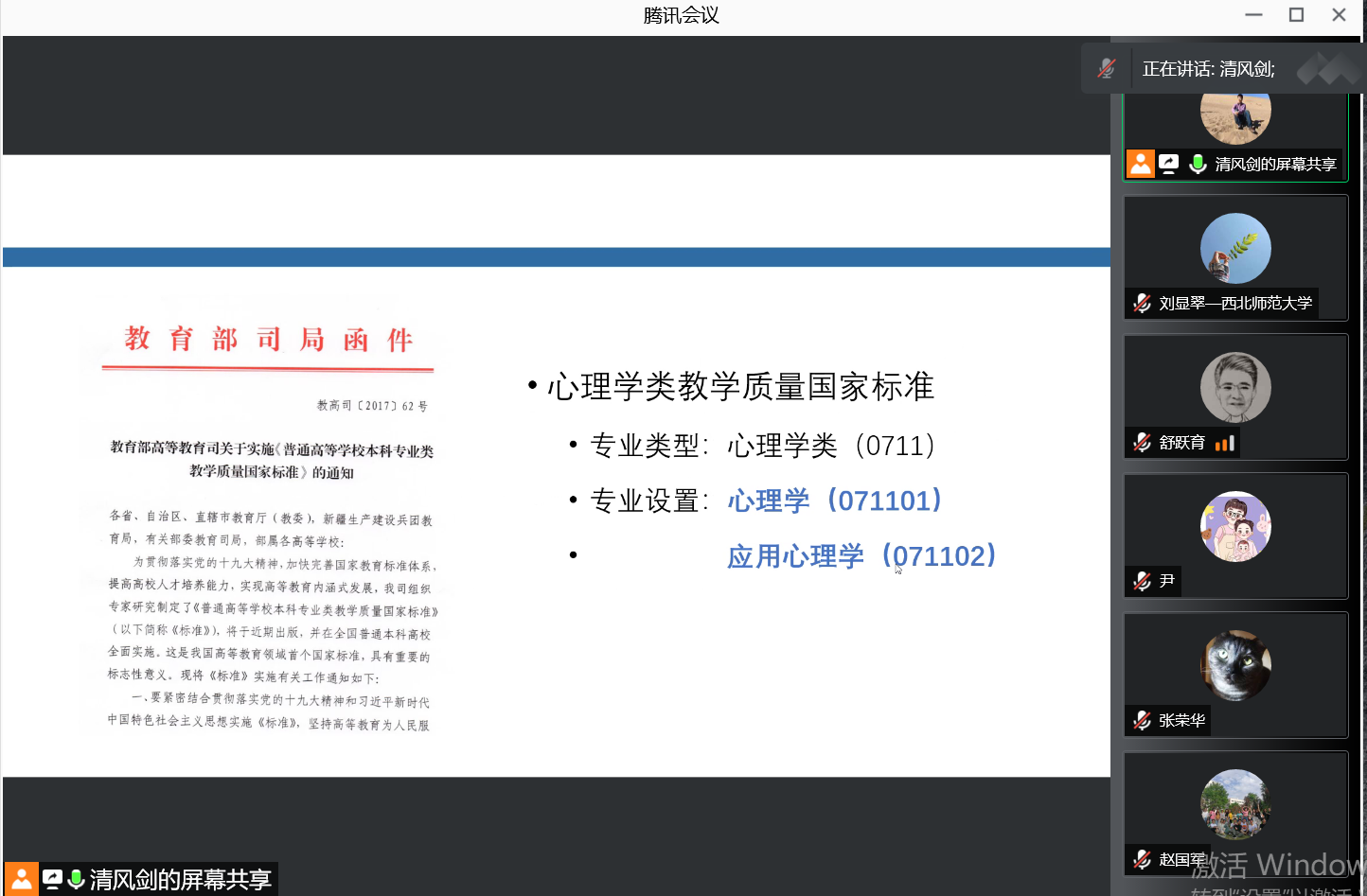 在会上,赵鑫院长介绍了学院前期组织国家一流专业申报、青年教师培养工作座谈,以及本科教学工作会议的准备等情况。康廷虎副院长结合《教育部关于印发普通高等学校本科教育教学审核评估实施方案(2021—2025年)的通知》、《心理学类教学质量国家标准》等国家政策文件,对学院心理学专业和应用心理学专业的专业定位、人才培养方案,以及本科教学工作量的核算方法等做了介绍。此外,应用心理系系主任刘显翠副教授详细介绍了心理学专业2021年培养方案的修订情况。