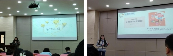 此次教育实习总结活动共包括实习话感想、教学展示、指导教师经验交流及表彰奖励等环节。在实习话感想活动中,白玉凤、高敏等同学介绍了实习过程中开展的各项工作,并应用多媒体、视频等方式分享了实习过程中的“为师之难”和“为师之乐”。在教学展示活动中,罗兰、祁淑芳和彭碧茹三位同学结合中小学生心理发展特点、心理健康教育的基本内容,分别以亲子关系、校园霸凌和优势探索为主题,展示了教案设计、课堂教学与说课等内容。在场的实习同学也对教学展示进行了点评。