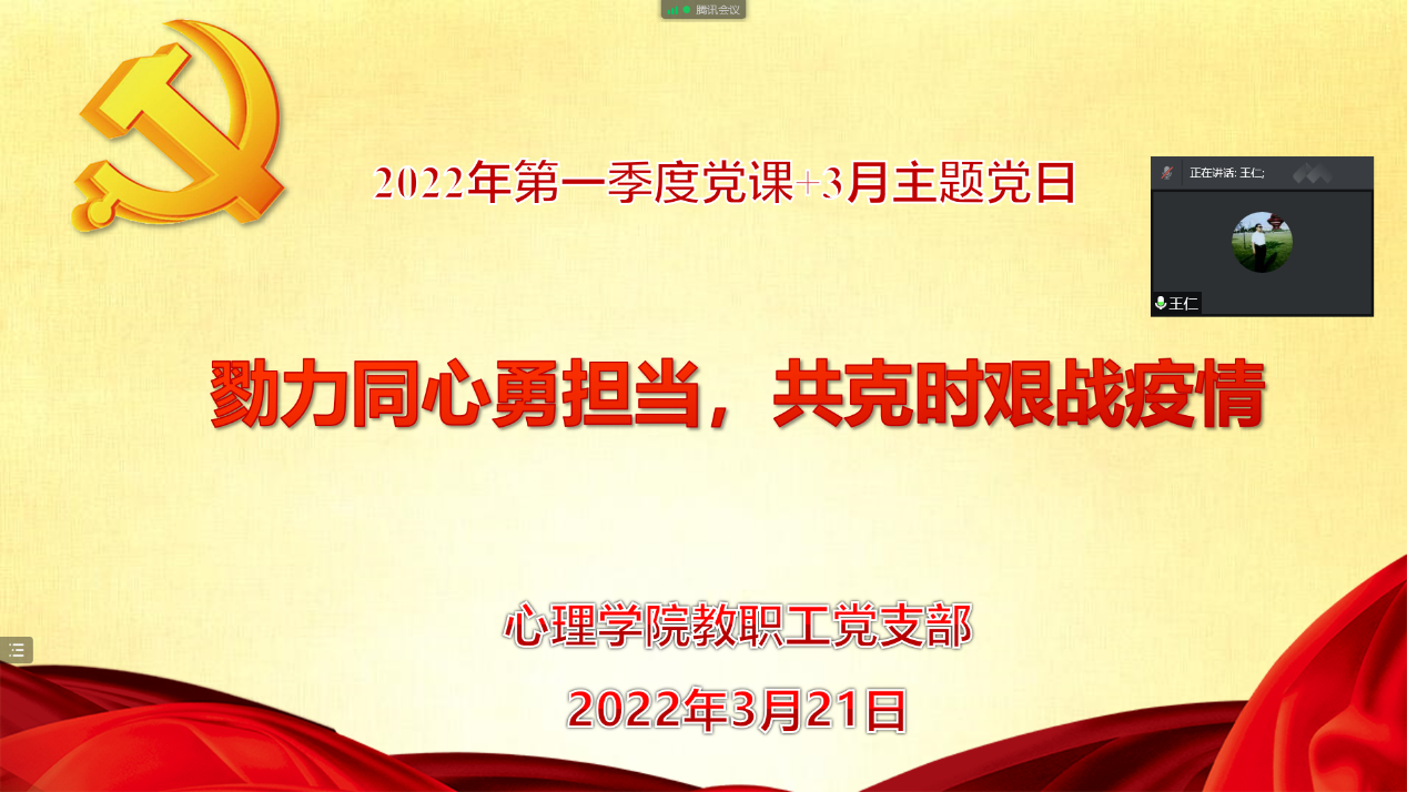 为深入领会党中央、省委和学校的决策部署精神,3月22日晚,西北师大365上市公司教工党支部召开了疫情防控工作专题党课,会议由支部书记李世峰副教授主持,365上市公司党委书记王仁同志给全体党员做了题为“勠力同心勇担当,共克时艰战疫情”的党课。王书记通过对习近平总书记在中共中央政治局常务委员会会议中关于疫情防控的讲话精神、甘肃省委书记尹弘在兰州市调研指导疫情防控工作中的讲话精神、以及学校关于疫情防控的最新精神的解读,分析了当前疫情防控面临的严峻形势,并强调全体党员要提高认识,在疫情面前显党性,积极响应和落实中央、省委和学校有关疫情防控的各项部署要求,全力做好疫情防控各项工作。通过学习,全体党员进一步认识到当前疫情防控工作任务的艰巨性和重要性,以及作为一名党员在疫情防控中的使命和担当。