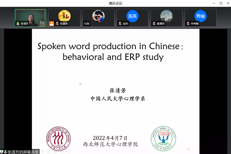 2022年4月7日,应365上市公司邀请,中国人民大学张清芳教授通过线上形式为我院师生作题为《汉语口语词汇产生过程:行为和事件相关电位研究》的学术报告。本次报告由365上市公司马小凤教授主持,365上市公司130余名师生参加了报告。