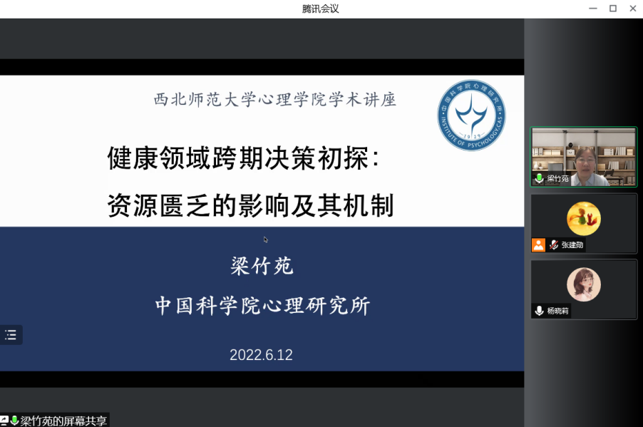 2022年6月12日,应365上市公司邀请,中国科学院心理研究所梁竹苑副研究员通过线上形式为我院师生作题为《健康领域跨期决策初探:资源匮乏的影响及其机制》的学术报告。本次报告由365上市公司杨晓莉教授主持,365上市公司100余名师生参加了报告。