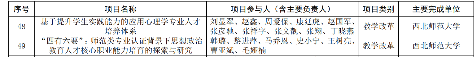 学校在落实《甘肃省教育厅关于做好2022年高等学校人才培养质量提高项目申报工作的通知》过程中,组织教学团队、实验教学示范中心、高等教育教学成果培育项目的申报与校级评审。学院刘显翠副教授组织团队,以“基于提升学生实践能力的应用心理学专业人才培养体系”为选题,申报甘肃省高等教育教学成果培育项目。