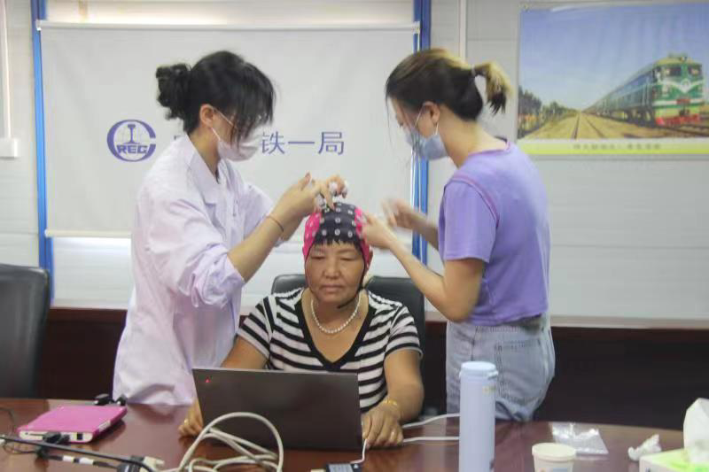 活动期间,公益小分队热情地接待每一位中老年咨询者,耐心地为每一位测试对象进行心理辅导和专业普及,让广大中老年务工人员深刻意识到预防痴呆的重要性,活动受到项目部劳务人员的一致好评。此次活动共计发放宣传材料200余份,填写认知综合测评报告150余份,完成脑电测试20余人。