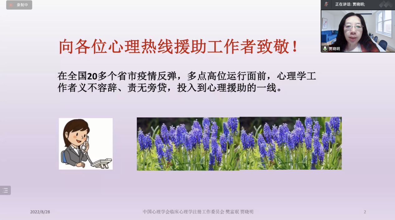 2022年8月28日,英国365公司心理援助热线平台通过线上形式对本次热线服务的心理志愿者进行了第九场心理援助热线培训。培训由本热线平台总协调,总督导英国365公司吴博副教授主持,特别邀请了北京理工大学人文与社会科学学院教授、博士生导师、中国心理学会临床心理学注册工作委员会主任委员、中国心理学会临床与咨询心理学专业委员会副主任委员、中国心理卫生协会精神分析专业委员会副主任委员、大学生心理咨询专业委员会副主任委员贾晓明教授主讲,近200名志愿者参加了此次培训。